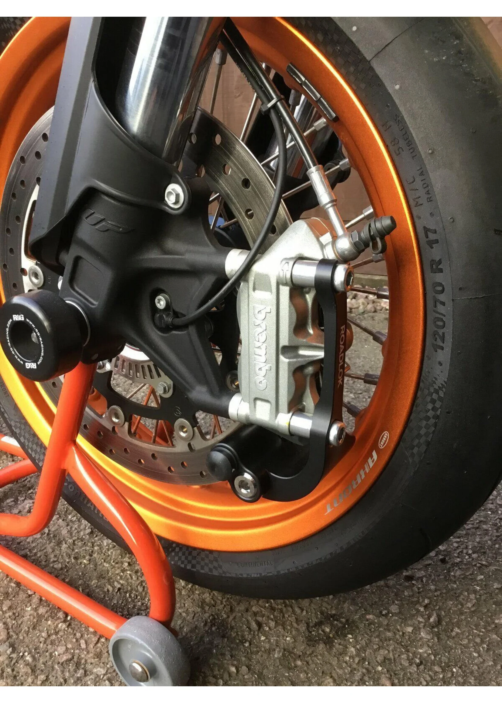 De originele ROADLOK XRA‑100L‑BLACK, gemaakt in de VS en ART4‑gecertificeerd. Geïntegreerd slot voor 100mm Brembo‑remklauwen links, met BrakeBolt‑vergrendeling die schade en wegrollen voorkomt. Gemaakt van billet aluminium en RVS.